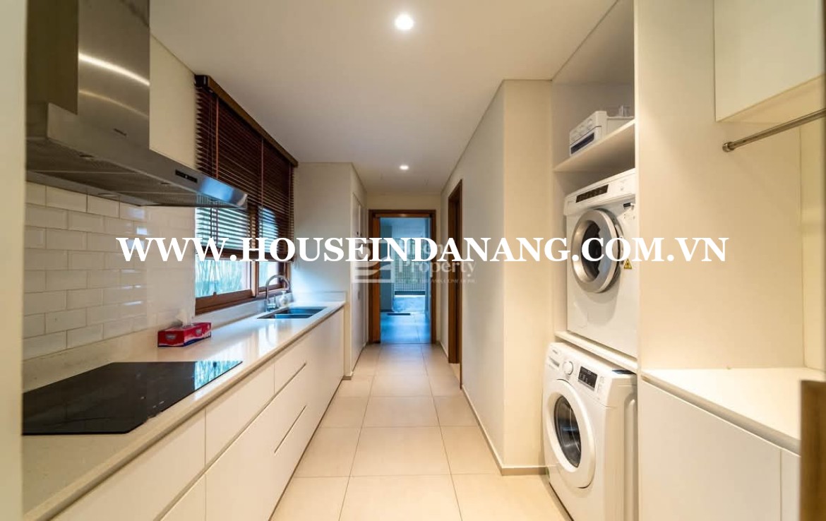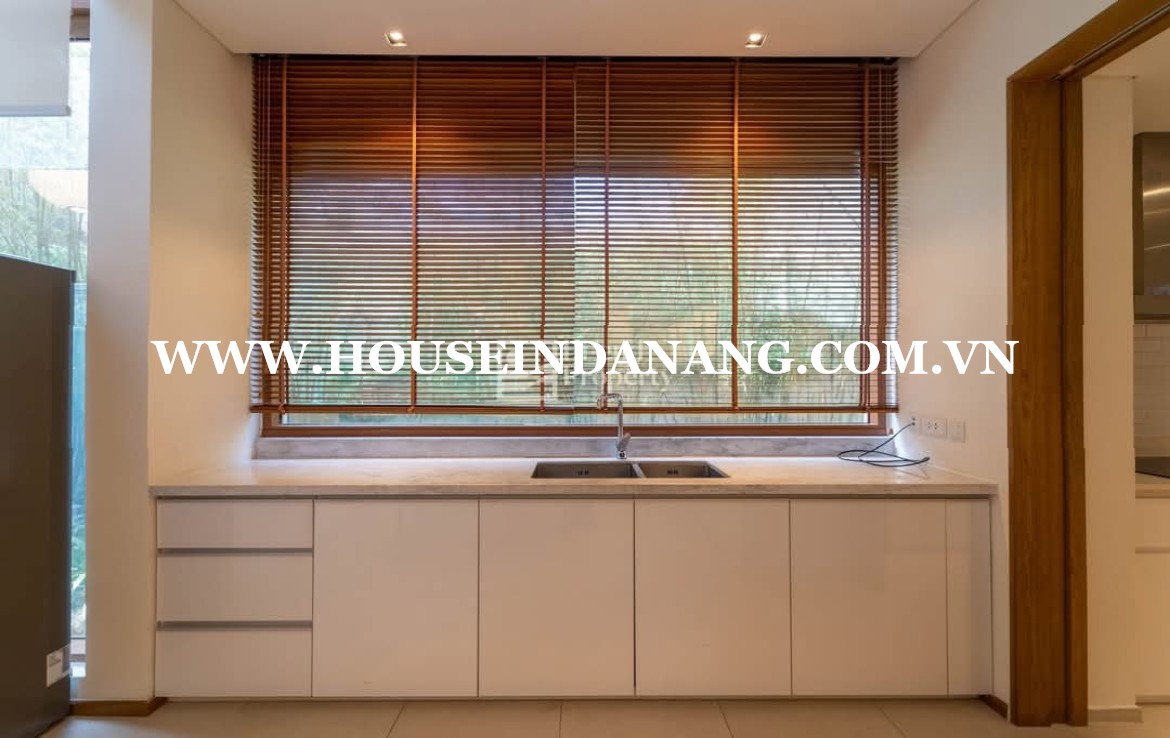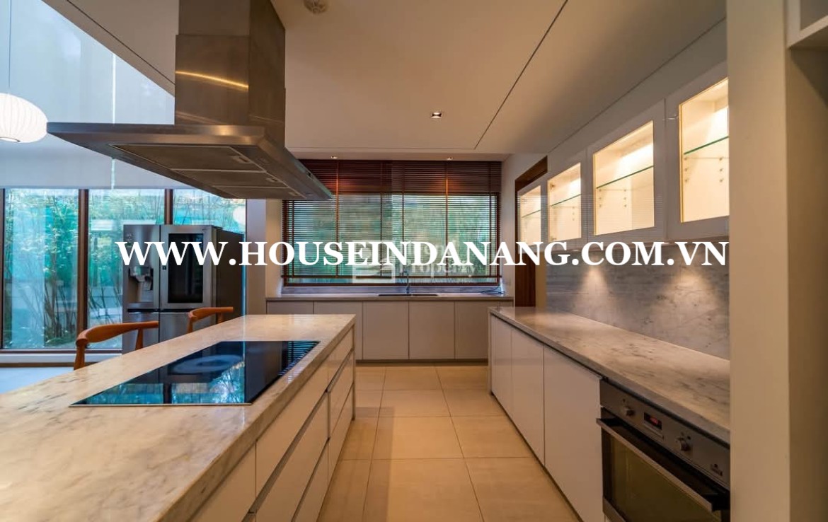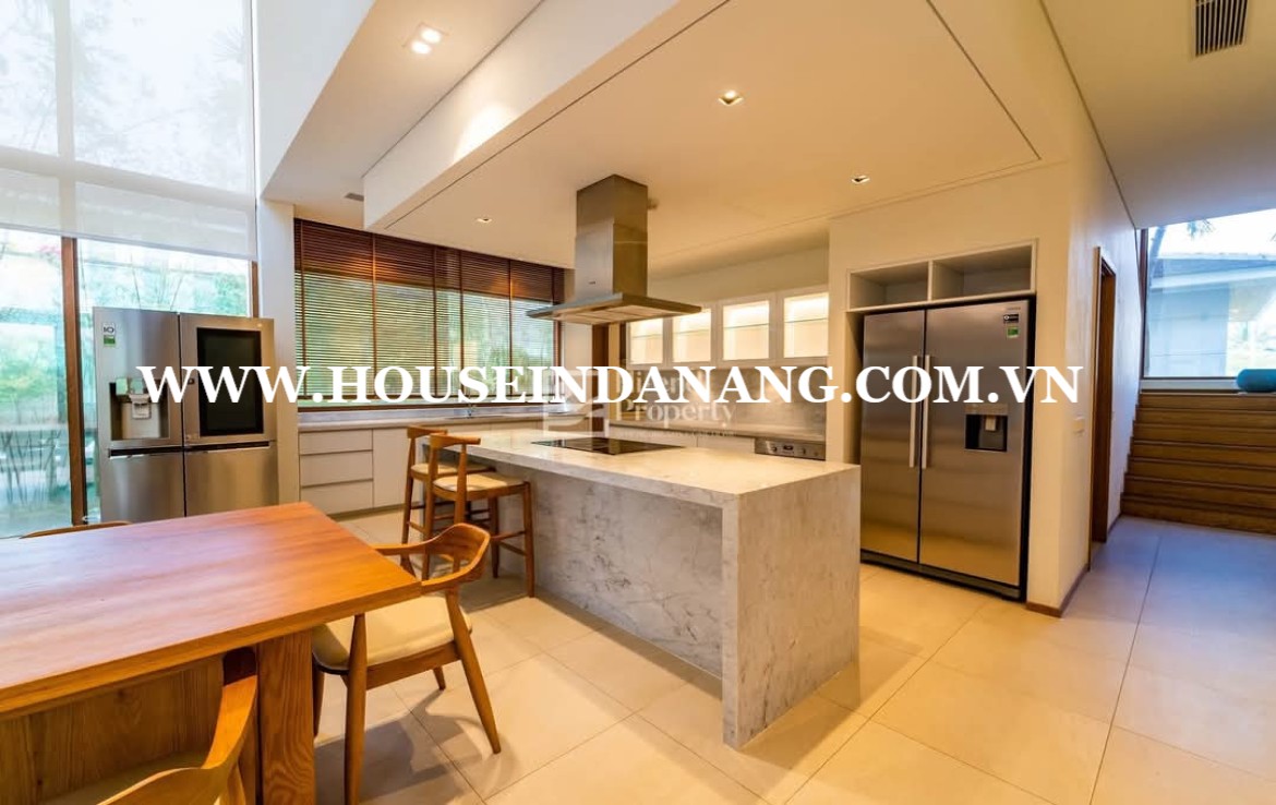 The kitchen in Danang luxury villas rent is quite spacious and modern.