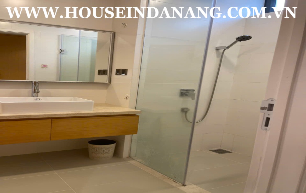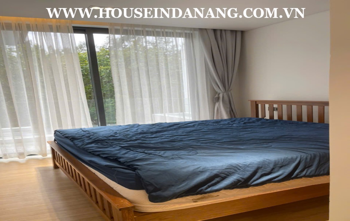 The beautiful villa is situated in the luxury villa compound- The Point Residences. It is just in the front of the award-winning “Dunes Golf Course” designed by Greg Norman. The villa looks so nice with green architecture and you can admire the spectacular view of the golf course. It follows the standard design with a cool swimming pool and a green garden as well. The Point Villa Residences– one of the luxurious villa compounds in Danang beachside, Ngu Hanh Son district, Vietnam. It is in the easy access to drive to Hoi An Ancient Town, in the short distance to walk to Non Nuoc beach bay. Point villas rental Danang consist of two floors, the usable area of 290 square meters, a green garden and swimming pool. The modern villa includes three bedrooms, two floors, fully luxurious furnished. The rental is US$2,200/month. Including the management fee.